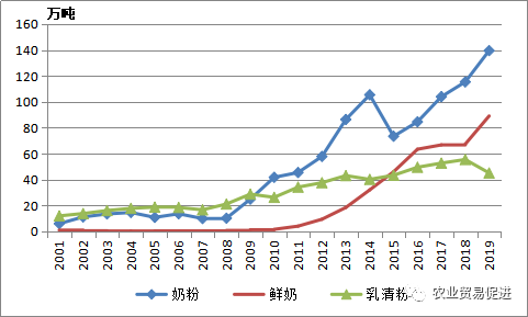 鲜奶进口快速增长,乳清粉进口相对稳定,进口来源地比较集中