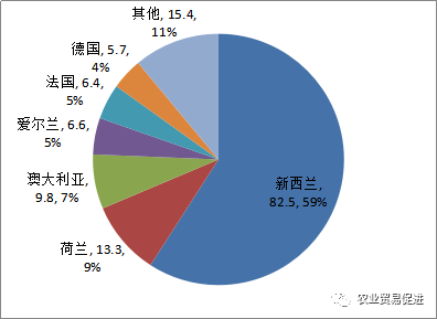 奶粉进口占全球贸易量的一成多,进口主要来自新西兰、欧盟和澳大利亚