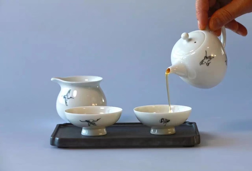 景德镇白瓷茶具有坯质致密透明,上釉、成陶火度高,无吸水性,音清而韵长等特点。元代,景德镇白瓷茶具已远销国外。如今,白瓷茶具适合冲泡各类茶叶,造型精巧,装饰典雅,其外壁多绘有山川河流,四季花草,飞禽走兽,人物故事,或缀以名人书法,颇具艺术欣赏价值,使用普遍。