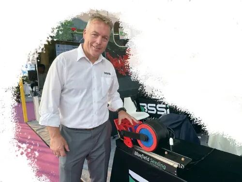 加拿大蓝域播种解决方案有限公司总裁克雷格·麦克洛斯基与他带来的精准定位技术设备。