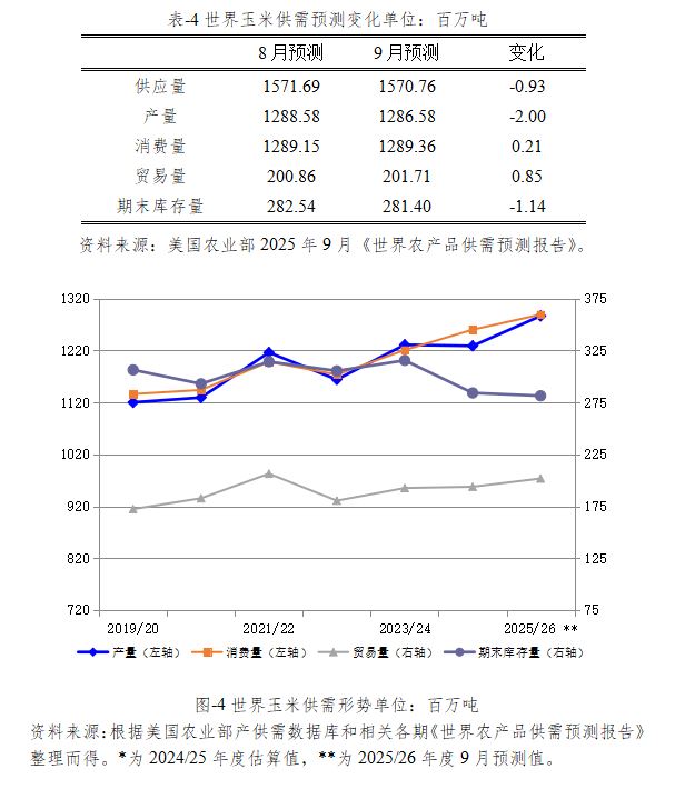 2025/26年度世界玉米供应量预计为15.71亿吨,较2024/25年度估算值增加2632万吨,比上月预测值下调93万吨。