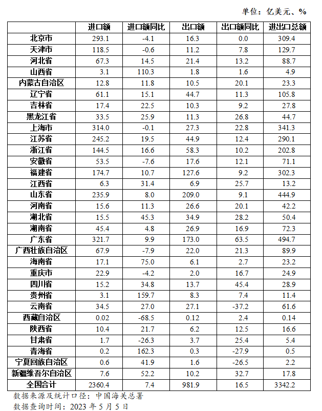 2022年1—12月各省(自治区、直辖市)农产品进出口情况
