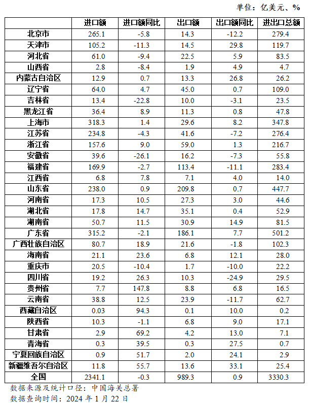 2023年全年各省(自治区、直辖市)农产品进出口情况一览表