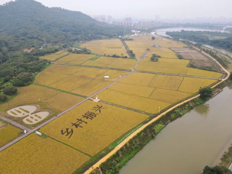 图片广州市晚稻田鸟瞰。