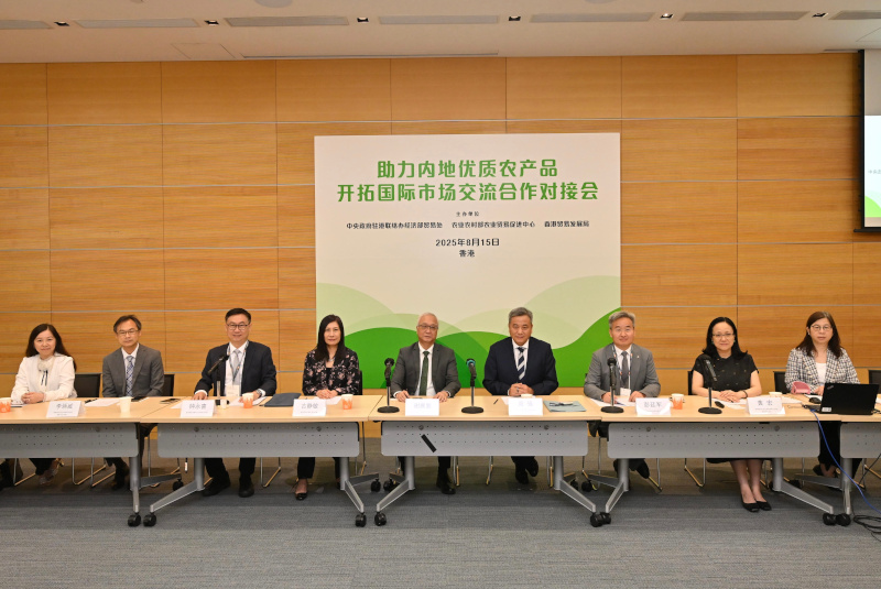展会期间,中心再度携手中央人民政府驻香港特别行政区联络办公室经济部贸易处和香港贸易发展局,连续第三年主办“助力内地优质农产品开拓国际市场交流合作对接会”,邀请近百家内地农业企业与香港本地重要采购商开展面对面交流对接。中心主任彭廷军、中央人民政府驻香港特别行政区联络办公室经济部副部长兼贸易处负责人周强和香港特区政府环境及生态局局长谢展寰出席活动并致辞。彭廷军主任表示,在国际贸易保护主义、地区冲突与气候变化等多重因素叠加影响下,全球农产品贸易面临严峻挑战,香港凭借“背靠祖国、连通世界”的独特优势,正成为内地优质农产品走向国际的重要枢纽。内地与香港农产品贸易合作前景广阔、潜力巨大,中心将持续发挥桥梁纽带作用,为深化内地与香港农产品贸易合作,助力内地农业企业充分利用香港国际化平台优势“扬帆出海”贡献更大力量。