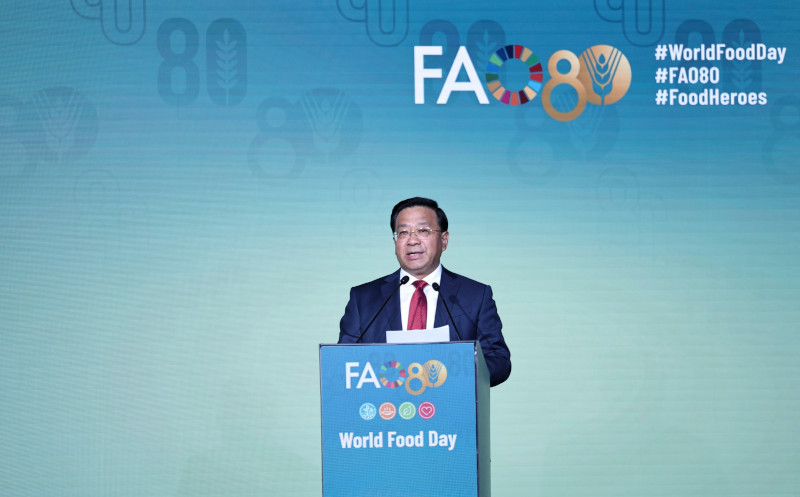 韩俊表示,习近平主席向联合国粮农组织成立80周年致贺信,充分彰显了中国政府对世界粮食安全问题的高度重视,体现了中国推动构建人类命运共同体的坚定决心和历史担当。中方将认真贯彻落实习近平主席贺信精神,全面践行全球发展倡议,与粮农组织等各方一道为创造一个“零饥饿”的世界而不懈努力。